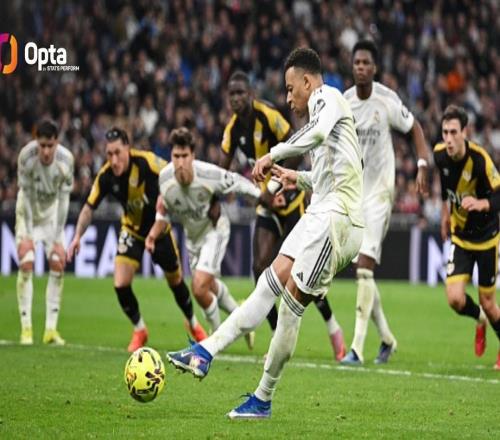 西甲第22轮,皇家马德里主场2-1击败巴列卡诺,姆巴佩在比赛99分34秒主罚点球破门,据统计,这是皇马本世纪西甲最晚...