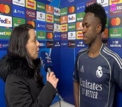 欧冠1/8决赛次回合,皇马客场2-1战胜曼城,维尼修斯赛后接受了TNT体育巴西频道的采访。大家好,我们现在和本场最...