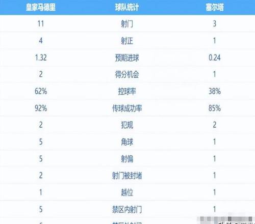 通过数据来看这次皇马的获胜几率很大,因为塞尔塔的实力并不算很强。
